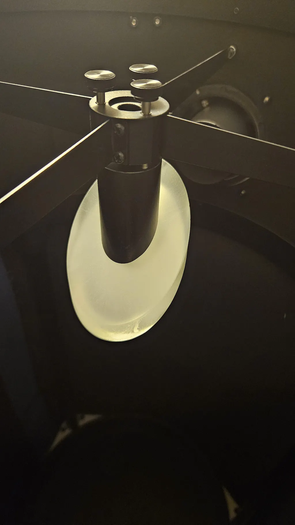 - Les boutons comprennent un ensemble de longues entretoises afin qu'ils reposent légèrement au-dessus de l'ouverture du couvercle rotatif. Le capot secondaire rotatif doit rester ouvert lorsque les boutons sont installés. Le couvercle est uniquement cosmétique et n'affectera pas le fonctionnement du télescope.