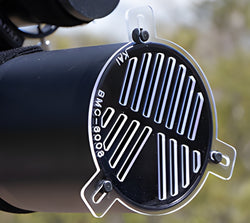 Nous avons remplacé les jantes du filtre par trois languettes qui contiennent un insert fileté sécurisé et une vis à oreilles en nylon, ce qui rend le filtre beaucoup plus léger sans réduire la sécurité de l'ajustement. La principale raison pour laquelle nous avons apporté ce changement particulier est que de nombreux télescopes ont des queues d'aronde ou d'autres accessoires qui interfèrent avec le bon montage d'un filtre solaire sur le télescope. Maintenant, le filtre peut être placé sur la lunette de sorte que les trois vis à oreilles se fixent toujours fermement au corps de la lunette. De plus, les languettes s'étendent suffisamment vers le bas pour permettre aux vis à oreilles de se connecter au-delà des biseaux trouvés sur certains capuchons de rosée ou les anneaux de plaque correctrice et les anneaux de tube de certains télescopes, assurant une connexion très sûre au télescope.