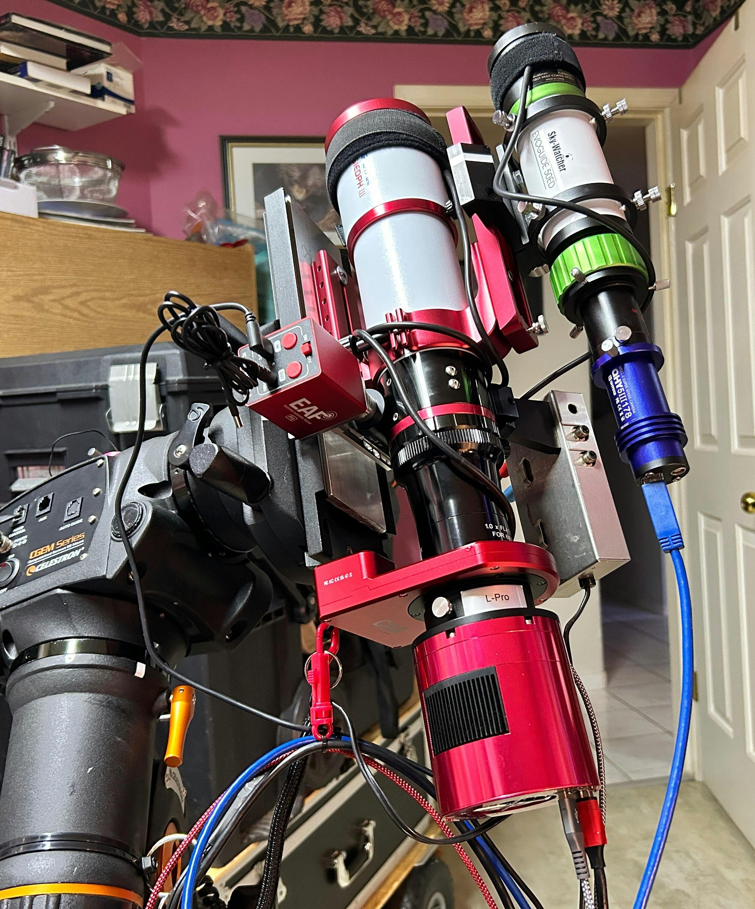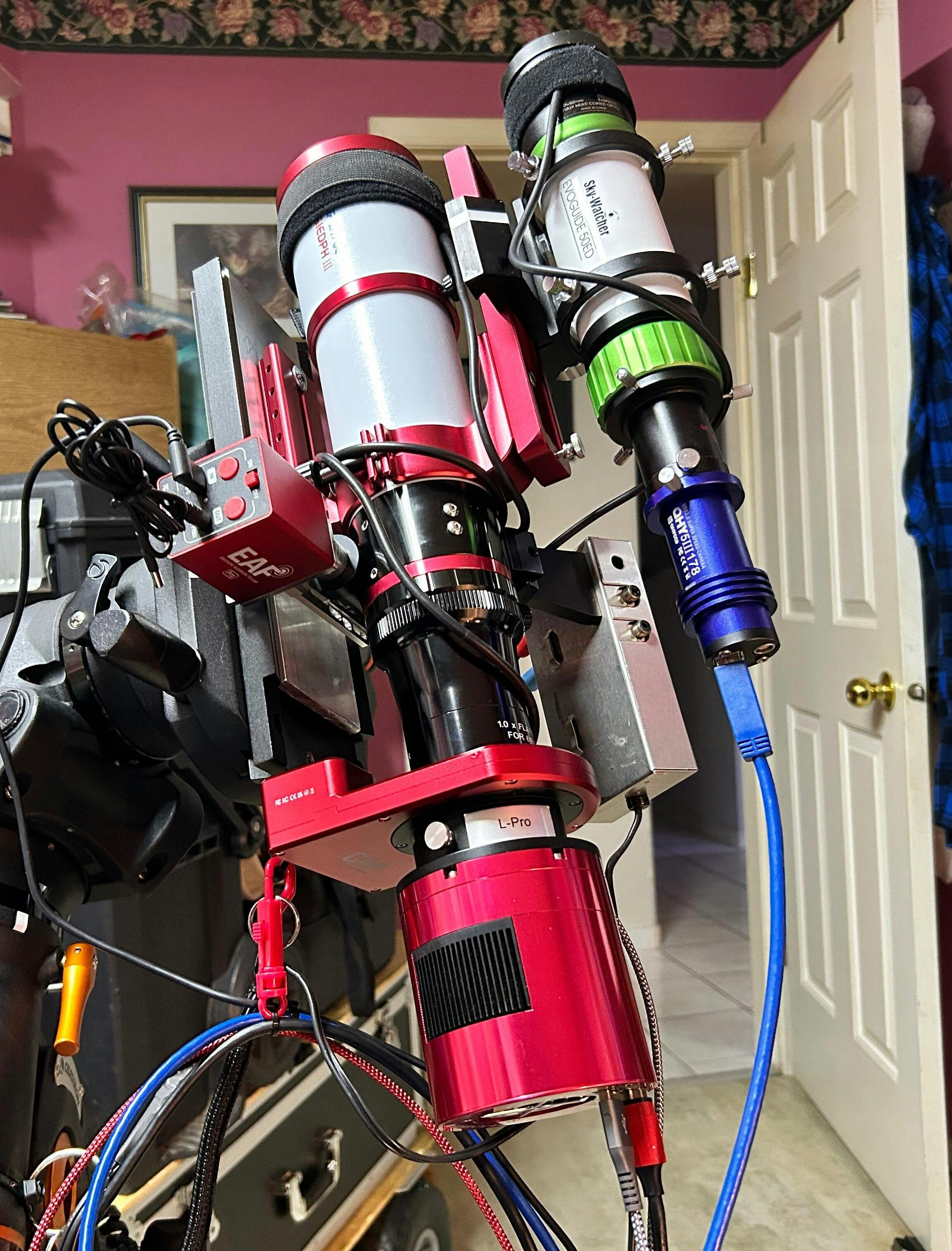 I’ve only had a chance to get one sub before encountering a computer glitch and fog! That being said, I got good focus ( using a ZWO EAF!) and everything looked good considering! No complaints and with flattener and mounting it on a Losmandy dovetail I’m able to use my ASI 2600 Mc pro camera and CAA and on it and on my Esprit 120 as they both have the same back focus when using the field flattener!
